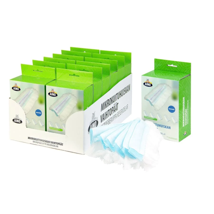 The package includes six microfiber duster heads. Aino’s microfiber duster is a powerful dirt and dust cleaner. The gentle cloth cleans without scratching and is great for sensitive surfaces. The bendable handle makes the product easy to store when not in use. The hanle is sold separately.