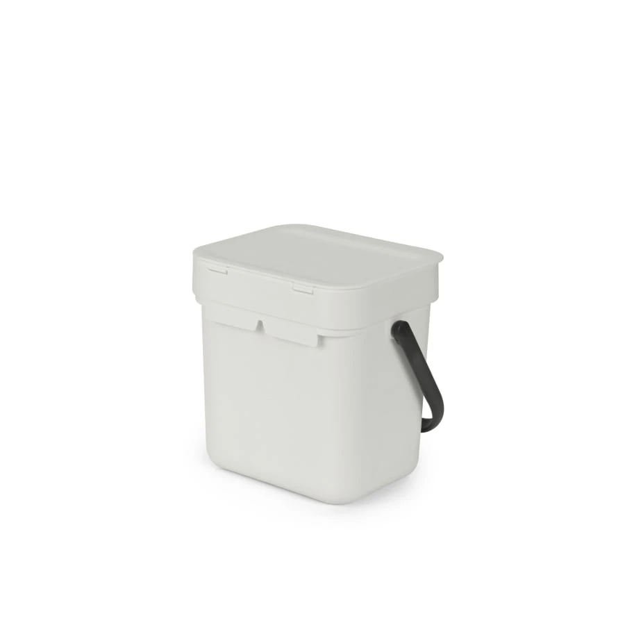 This cute 3 litre Brabantia Sort & Go Recycle Bin with stay-open lid is great for peels, scraps, leftovers… all organic kitchen-waste actually. Just display it on your worktop or hide it in a drawer. Full? Grab it by its handy handle and empty it on your compost heap or in your organic waste container. A great bin in XXS size!