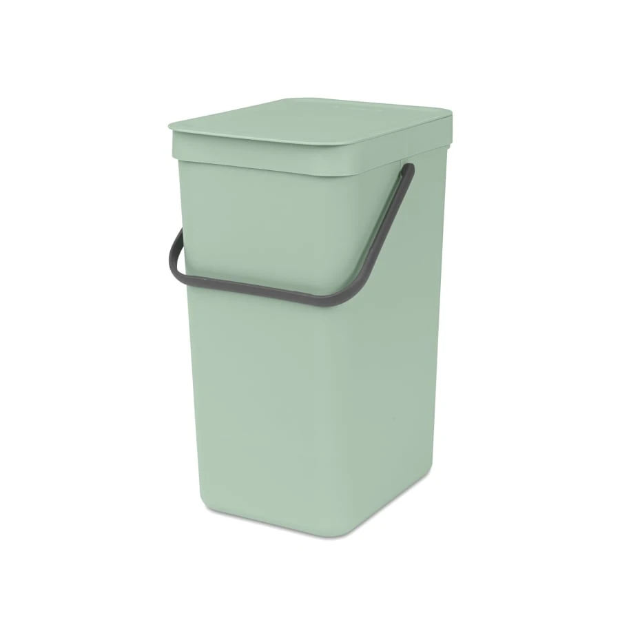 Collecting empty packaging, bottles, or cans separately? Make it easy on yourself, organise it all with this 16 litre Brabantia Sort & Go Recycle Bin. Put it in any corner, flat to the wall, or save even more floorspace and hang it from its included wall bracket. Time to empty it? Piece of cake, because of the large handle and bottom grip for easy carrying and emptying. Sort & go!