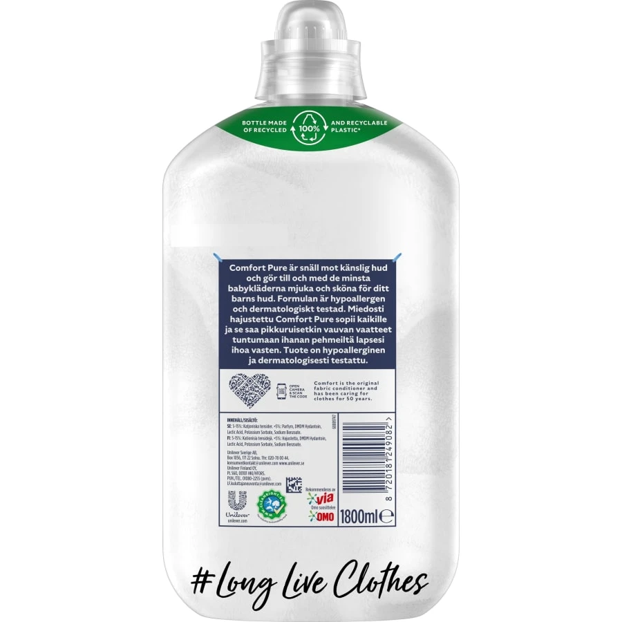 Den milt doftande Comfort Pure passar alla och den gör att även små babykläder känns underbart mjuka mot ditt barns hud. Produkten är hypoallergen och dermatologiskt testad.