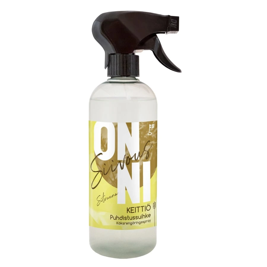 Finnish kirchen cleaner that has a charming euvalyptus scent. pH of the product is 10 so it is very efficient in removing greace dirt. The washing efficiency of ONNI cleaning sprays is based on natural wheat-based surfactant, which is obtained as a by-product of the food industry. Cleaning with the ready-to-use ONNI cleaning spray is very easy. Biodegradable products are free from animal-derived raw materials, and the bottle is made of 100% recycled plastic.