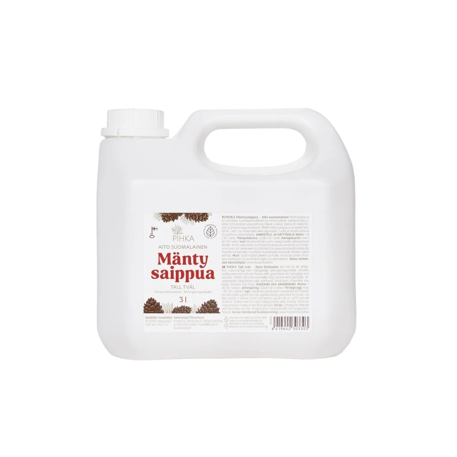 The natural cleaning power of pine soap has been known in Finland for a long time. Pine soap is an effective, nature-friendly and versatile general cleaning agent. Cleaning power of pine oil derived from pine tree resins. Excellent washing power and a fresh scent guarantee a pleasant clean result. PIHKA pine soap contains no preservatives or additives, and neither it contains any synthetic dyes or perfumes. Areas of application: carpets, floors, oven, kitchen, bathroom.