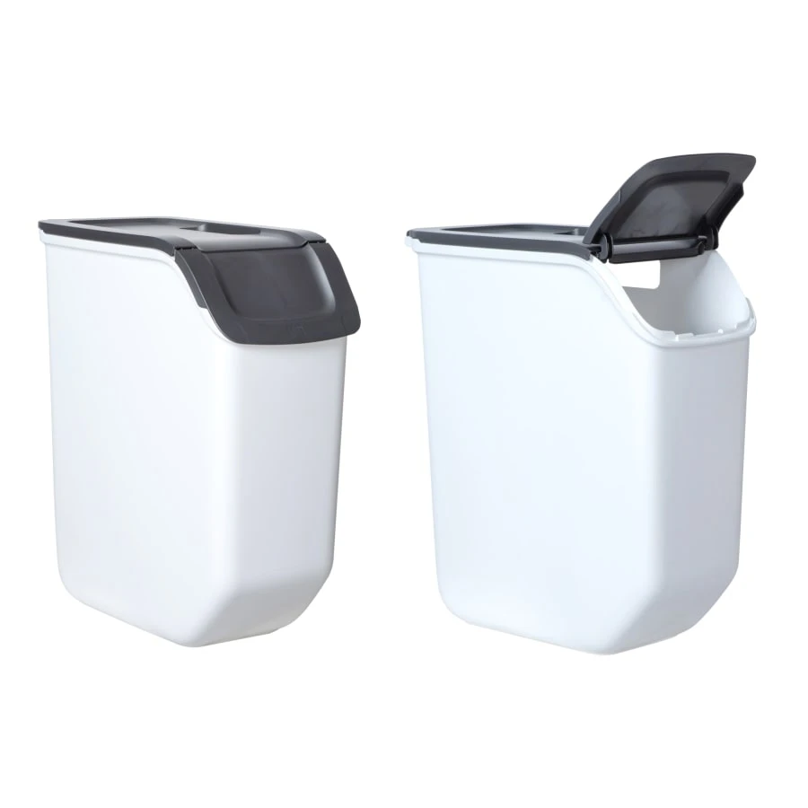 - Med locket som öppnas och förblir öppet är det enkelt att lägga in de material som ska sorteras i behållaren.
