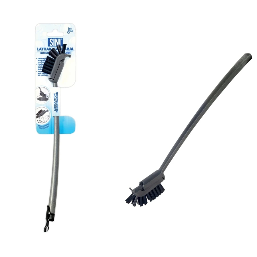 SINI Golvavloppsborste är speciellt framtagen för grundlig rengöring av golvbrunnar. Den smala borsten passar in i golvbrunnens urtag och tack vare det långa handtaget är rengöringen enkel utan att smutsa ner händerna. Det finns en krok i änden av borsten, som gör att du enkelt kan öppna locket till golvbrunnen. En hängare är fäst i handtaget på golvbrunnsborsten, från vilken borsten kan hängas luftigt och torrt efter sköljning. Hängaren kan tas loss från stammen om så önskas.