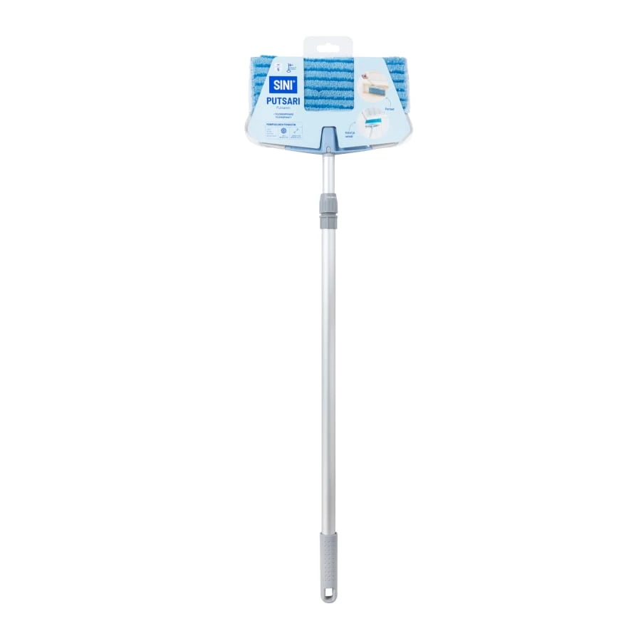 Snabbmoppen är en lätt och behändig mopp för snabb rengöring. Mopphandtaget anpassar sig väl till ytan som ska rengöras. Mikrofiberöverdraget är fäst med snabbmoppande klistermärken, så det kan användas antingen torrt eller vått eller vått. Med hjälp av en snabbmopp är det enkelt att rengöra golvlister, tak samt golv. Den lätta moppen är lätt att hantera. Moppen har en teleskoparm som kan justeras till önskad längd.