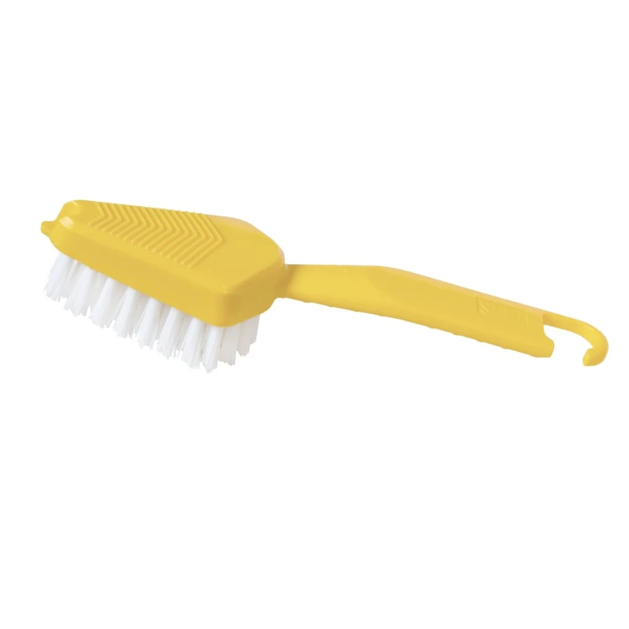 En effektiv borste för att tvätta potatis och rötter. Även lämplig för att tvätta frukt. Det ergonomiska handtaget ger ett stadigt grepp som skyddar fingrarna. Den knäppiga borsten tar lätt bort skalen. Knoppborttagare på änden. Skölj borsten efter användning och häng den på en krok för att torka. Borsten kan även diskas i diskmaskin. Lämplig för hem och stuga. Återvunnen plast.