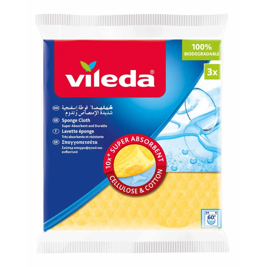 Mycket absorberande våt svampduk: absorberar upp till 15 gånger sin egen torrvikt av vätska. Gör ett rent och torrt märke även med ett svep. Inget ludd. Med noggrann sköljning och luftig torkning förblir den hygienisk under lång tid. Lämplig för alla ytor som kräver snabb och effektiv torkning. Tillverkad av 100% naturliga material: bomull och cellulosa – tyget kan kasseras genom kompostering eller med bioavfall. Maskintvätt: 60°C, ingen sköljmedel eller torktumlare. Förpackningen innehåller tre svampdukar.