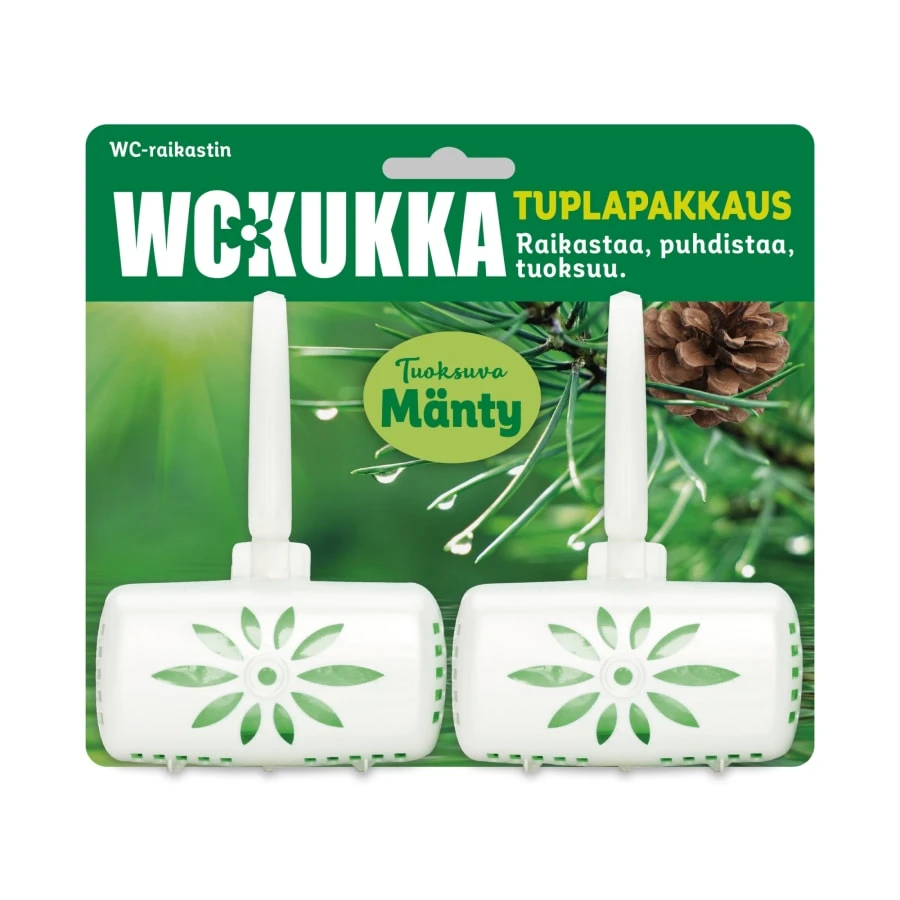 WC Kukka Lime toilet block cleans the toilet seat and gives a fresh scent with each flush. The toilet block prevents the creation of limescale and removes unpleasant odors. Fresh and clean scent. The convenient twin pack lasts for several weeks at normal household consumption.